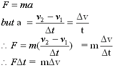 The greek letter delta is used to mean the change in and is the amount of time for which the force is applied. Note for later use. The unit of impulse is the newton second.